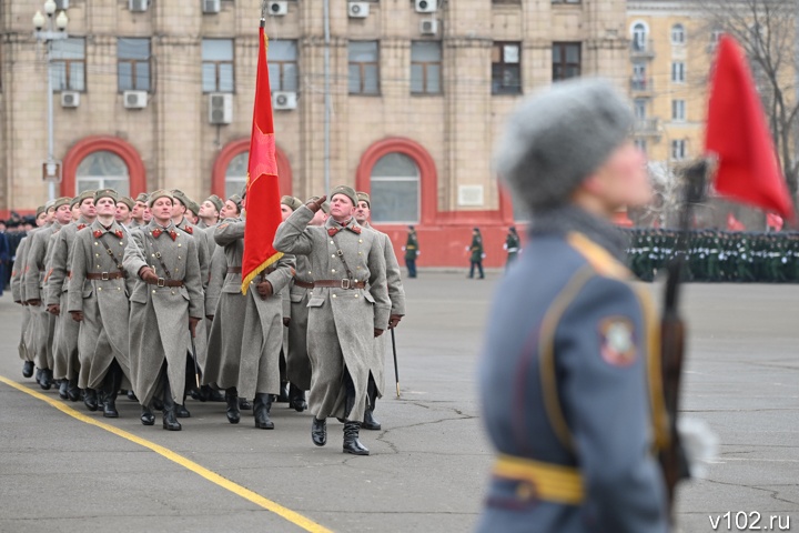Празднование Сталинградской Победы невозможно было бы представить без военного парада в центре города-героя. Больше 1000 военнослужащих стройными рядами прошли по площади Павших борцов.