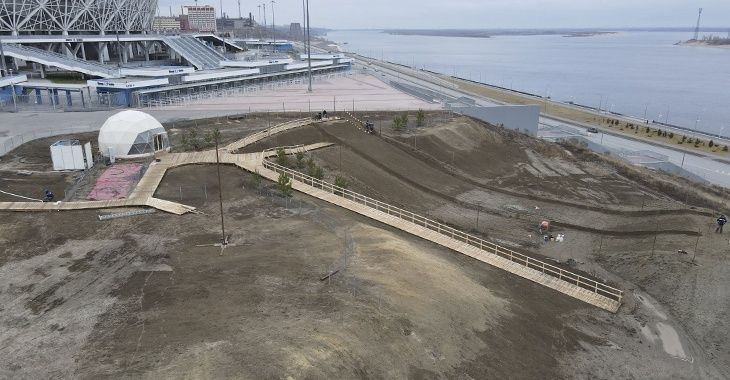 Для подготовки аттракциона на склоне "Волгоград Арены" были проведены земляные работы. Смонтирована трасса протяженностью около 70 метров. Рабочие оборудовали дорожки, стартовую площадку, построили лестницу.