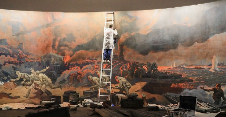 В музее-панораме «Сталинградская битва» в Волгограде завершили восстановление самого большого в России живописного полотна. Как сообщает ИА «Высота 102», к реставрации привлекли специалистов студии военных художников имени Грекова.