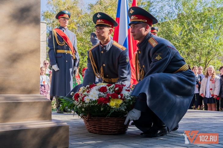 Право открыть памятный знак предоставилось директору средней школы №34 Краснооктябрьского района Волгограда Александру Ракову и полковнику в отставке Анатолию Цыбину.