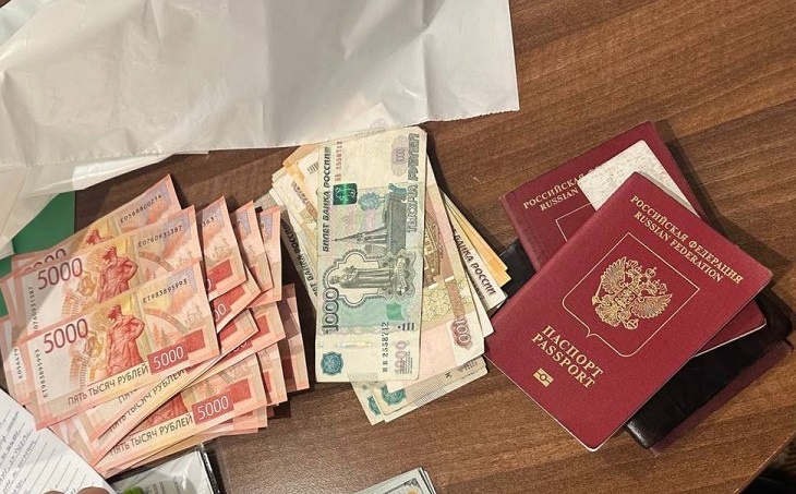 Судя по видеокадрам, предоставленным силовиками, коммерсант был задержан в гостинице, когда находился в компании дамы. При обыске оперативники нашли крупную сумму денег и паспорта.