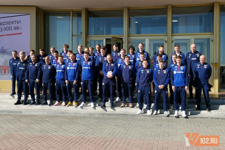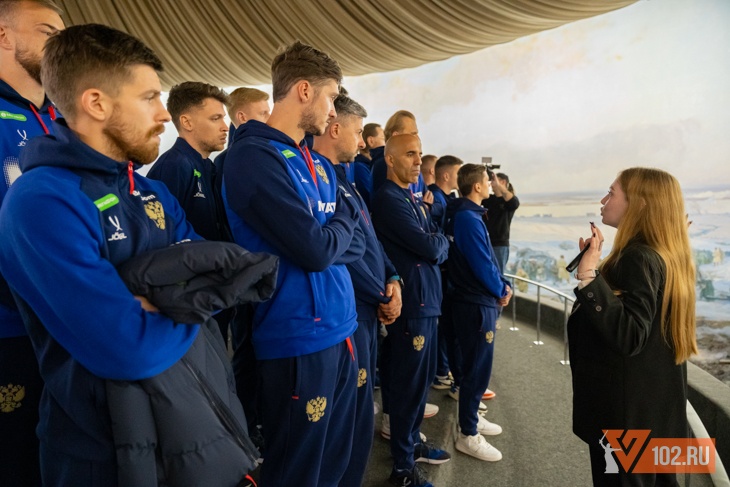 Напомним, российская сборная прибыла в город-герой накануне, 8 октября. А сегодня уже команду ожидала насыщенная культурная программа. В стенах музея-панорамы «Сталинградская битва» главному тренеру российской сборной Валерию Карпину директор музея-заповедника Алексей Дементьев вручил в качестве подарка мяч. Затем была сделана общекомандная фотография на память.