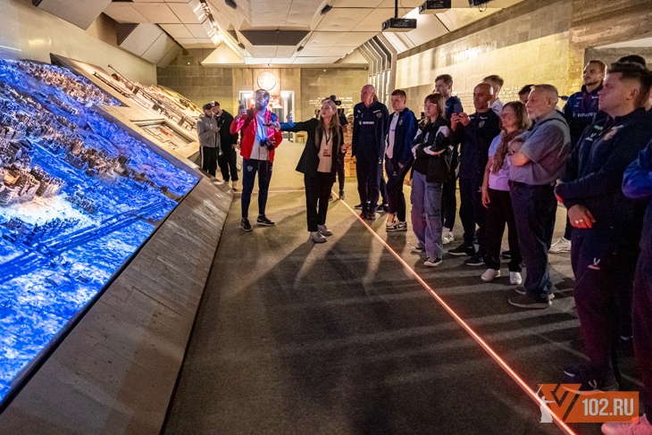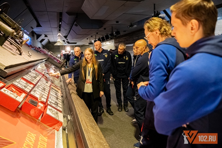 Футболисты с интересом осматривали экспозиции музея, диараму, зал с подарками городу-герою от зарубежных государств. Экскурсоводы в подробностях рассказали о событиях Сталинградской битвы.
