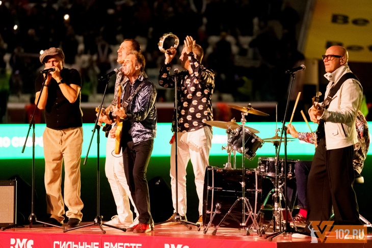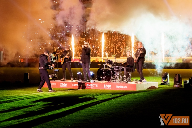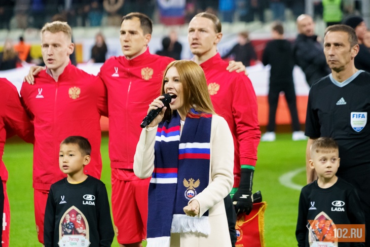 Перед стартовым свистком зрители также смогли насладиться выступлениями группы «СерьГа», а гимн нашей страны исполнила известная певица Наталья Подольская.