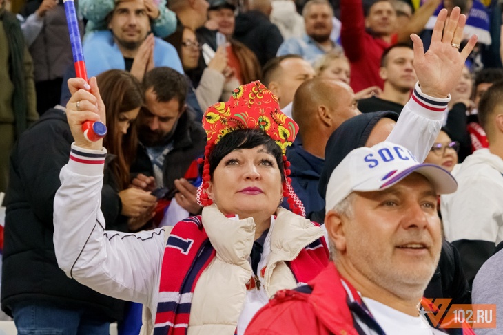 Многочисленные российские флаги развевались в руках болельщиков, которые приехали на праздник футбола из разных уголков нашей страны. Также посетили встречу гости из Ирана. А яркая предматчевая программа захватила многих пришедших на стадион.
