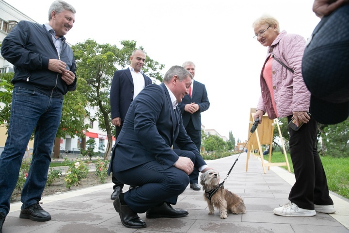 А это уже фото, на которых Андрей Бочаров и четвероногие питомцы жителей Волгограда. Обе встречи, несложно догадаться, состоялись во время рабочих прогулок Андрея Ивановича по областному центру.