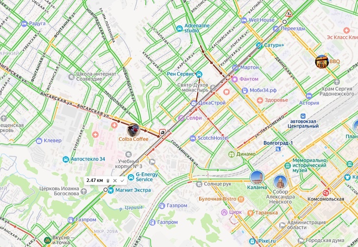 По данным сервиса Яндекс Карты, пробка на оживленной магистрали в разгар рабочего дня берет свое начало от ул. Ткачева в Центральном районе Волгограда и заканчивается в районе улицы Скосырева в Центральном районе.
