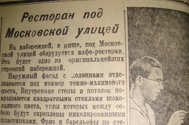 - Туалет заменили павильонами для продажи прохладительных напитков, фруктов и мороженого, а в 1938-м на этом месте возвели подземный ресторан, - уточняет Сергей Иванов. – Правда, пресса того времени предлагает нам другие даты. В сентябре 1936 года журналисты «Сталинградской правды» пишут, что «на набережной, в нише под Московской улицей оборудуется кафе-ресторан. Это будет одно из оригинальнейших строений набережной. Наружный фасад с колоннами отделывается под мрамор темно-малинового цвета. Внутренние стены и потолок покрываются квадратными стеклами шоколадного цвета, углы которых между собою будут скреплены никелированными пластинками. Фриз и барельефы по стенам у потолка будут отделаны под бронзу, так же, как и верхние части семи колонн, на которые положен потолок. Барельеф представляет собой лозы с кистями винограда. Среди них – лепные фигурки детей, музыкантов и танцоров. Кафе-ресторан под Московской улицей будет единственным в своем роде зданием города». Позже в газете выходит еще одна заметка: «Через пять-шесть дней заканчивается строительство третьего ресторана на набережной. В отличие от двух первых, он может работать и зимой. Наружная отделка несколько неряшлива, колонны поставлены криво, да и отделка их под гранит сделана грубо. Внутренняя часть ресторана значительно лучше». То есть выходит, что ресторан оборудовали еще в конце 1936-го, а в 1938 – реконструировали.