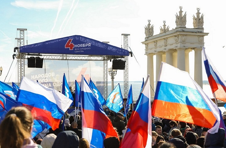 В День народного единства у фонтана «Искусство» на верхней террасе Центральной набережной в Волгограде прошёл митинг, участие в котором приняли представители власти, общественных и религиозных организаций, национальных общин, казачьих обществ и молодёжь.