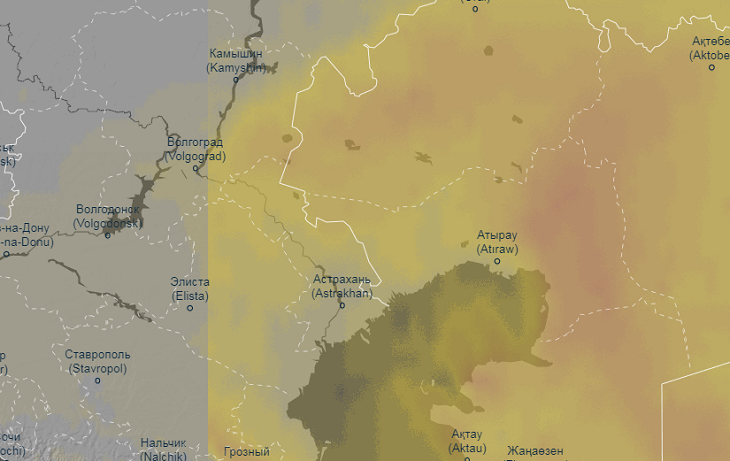 Районы Заволжья в Волгоградской области оказались во власти пыльной бури, которая движется со стороны Казахстана. Как сообщает V102.RU со ссылкой на погодный сервис Ventusky, во власти этого атмосферного явления оказались также Астрахань, Саратов и Махачкала.