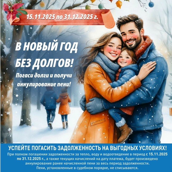 Погасив задолженность заранее, можно избавиться от начисленных пеней и получить возможность провести новогодние праздники в приятных хлопотах – выборе подарков, планировании меню и встреч с близкими, не думая о предстоящих платежах.