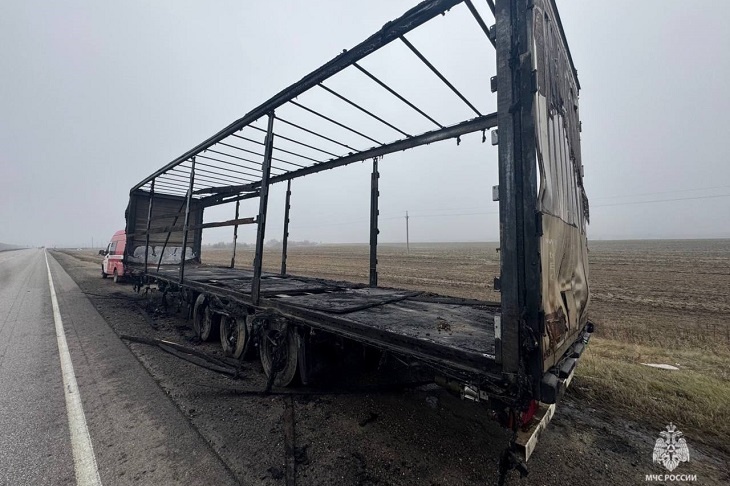 24 ноября произошел пожар на трассе Р-22 в Михайловском районе. На этот раз кабина водителя осталось целой. Однако полностью выгорел полуприцеп фуры. Огонь распространился на 60 квадратных метров.