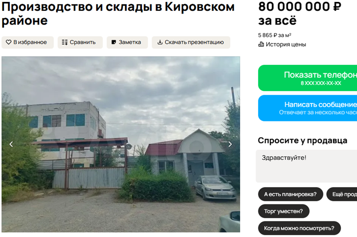 В Кировском районе Волгограда выставлена на продажу база бывшей кондитерской фабрики «Славянка». Как сообщает V102.RU, стоимость объекта составляет 80 миллионов рублей с НДС.