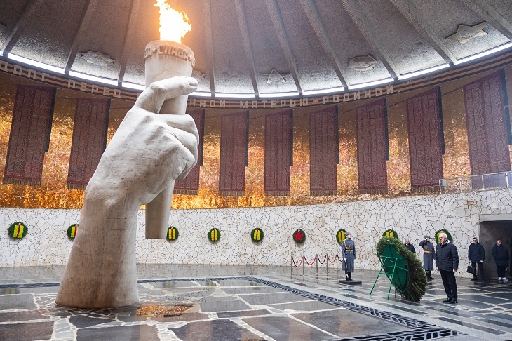 11 декабря Генеральный прокурор России Александр Гуцан по прибытию в Волгоград сразу из аэропорта направился на Мамаев курган, где почтил память защитников Отечества.