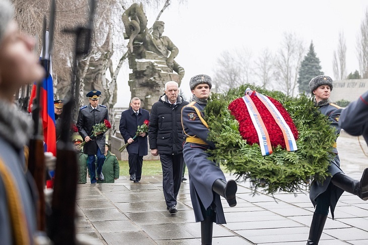 Сразу по прилете в город-герой Генпрокурор РФ направился на Мамаев курган, где возложил цветы в Зале Воинской Славы к Вечному огню и могиле маршала Василия Чуйкова.