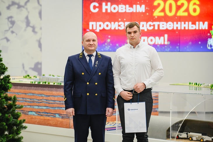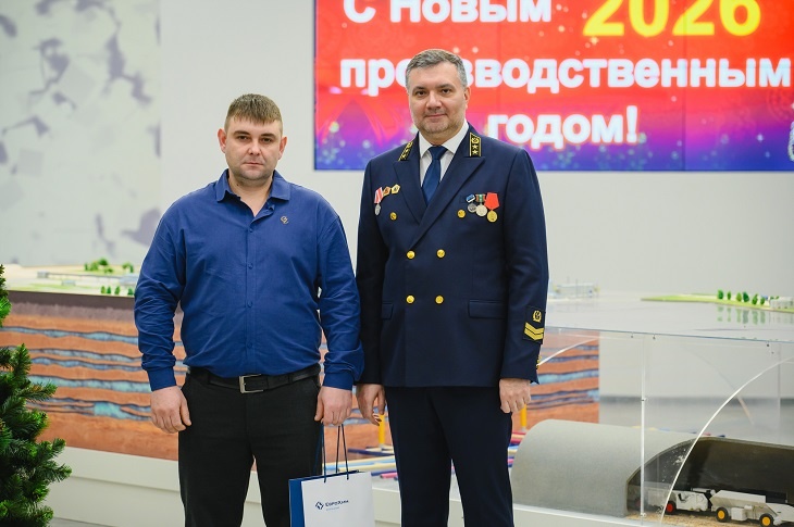 За большой трудовой вклад и досрочное выполнение плановых показателей по добыче руды генеральный директор наградил машиниста буровой установки 5 разряда участка горно-капитальных работ №1 Сергея Ушакова, машиниста горных выемочных машин 6 разряда участка горно-подготовительных работ № 5 Александра Юрьева и машиниста подземных самоходных машин 4 разряда участка подземного транспорта Данилу Силютина.
