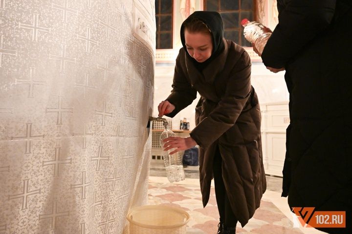 Торжественная служба продолжилась с полуночи 19 января и завершится к 10 утра. Желающие могут посетить храм, где проходит Великое освящение вод.