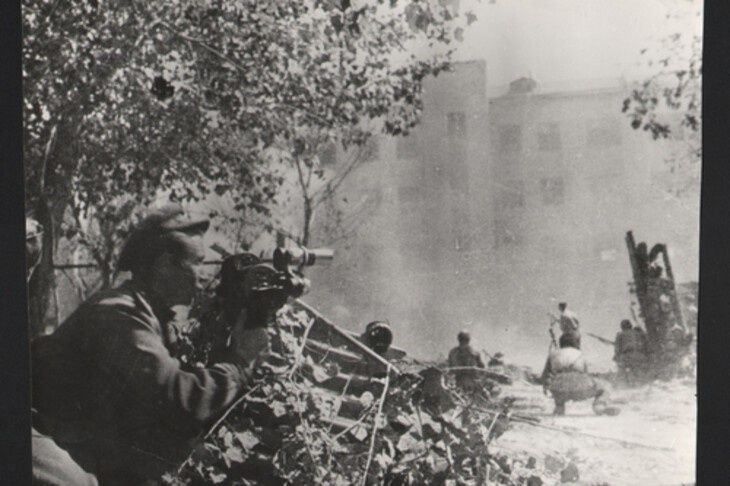 А тогда, в 1942 году, невысокого и худенького оператора – из-за телосложения его нередко принимали за мальчишку – прислали в Сталинград. В город на Волге он попал в один из самых трагичных дней в его истории – 23 августа. Снимая страшные кадры, он писал своей Шуре: «Я снял исключительной силы обвинительный акт против немецких фашистов… Я показал, как беззащитные женщины, дети и старики, оставшиеся без крова, проклинают Гитлера. И, наконец, еще тот вихрь металла, которым отплатили наши зенитчики этим налетчикам…»