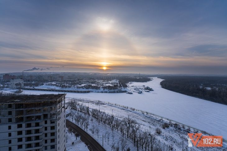 Фотокорреспондент ИА «Высота 102» Андрей Поручаев запечатлел завораживающее природное явление – гало. Съемка проходила в Красноармейском районе Волгограда на закате 27 января.