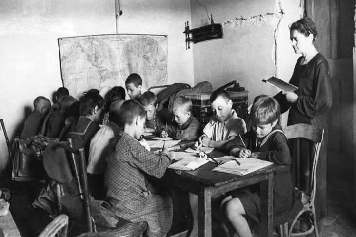 - Я прошла несколько шагов и вдруг на обугленном столбике увидела приклеенный листок, на котором было написано: "Дети с 1-го по 4-й класс приглашаются в школу». Был указан адрес, и я быстро нашла это место. Вернувшись домой, сказала: «Пойду в школу!». Мама удивилась: «Какая школа? Все школы сожжены и разбиты», - вспоминала свою долгожданную радость Людмила Овчинникова. – Наша учительницы Полина Тихоновна старалась отвлечь нас от тяжелых мыслей, подбирала нам для диктантов далекие от темы войны тексты. Ее мягкий голос, помню, ассоциировался у меня с шумом ветра в лесу, терпким запахом степных трав, блеском песка на волжском островке...В наш подвал постоянно доносились звуки взрывов. Это саперы очищали от мин железную дорогу. Никто из ребят, услышав взрывы, не отвлекался от занятий. Все дни войны в Сталинграде мы слышали взрывы и пострашнее, и поближе.