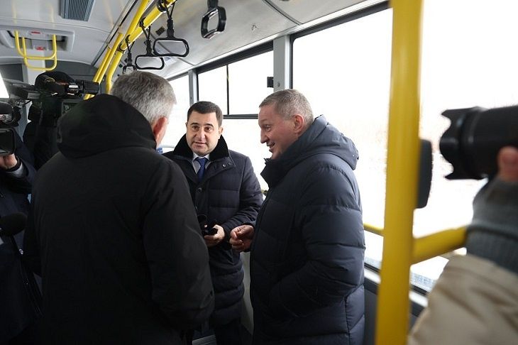 После завершения разговора у стендов губернатор Андрей Бочаров представил Никите Стасишину один из тех самых, «домашних», автобусов, которые прижились в Волгограде. В салоне представителю министерства показали современные системы климат-контроля, терминалы для безналичной оплаты, а также удобные сидения.