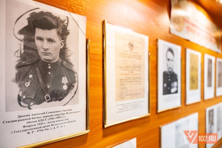 Также на стендах размещены документы о ещё одном бойце – Василии Андрианове. Он рано лишился родителей и воспитывался в детском доме Вологды. В июне 1941 года был мобилизован в красную армию, а с января 1942 по 1945 годы работал в газете «Сталинградский удар». Вместе с рядовыми бойцами 65-й армии прошёл от Волги до немецкого побережья Балтики. За боевые заслуги награждён орденами Отечественной войны, Красной звезды, Отечественной войны 1 степени, Красной Звезды, Знаком Почета, медалями «За боевые заслуги», «За оборону Сталинграда», «За взятие Варшавы», «За победу над Германией в Великой Отечественной войне 1941-1945».