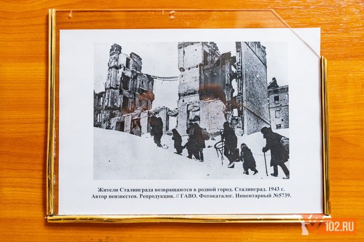 Первые послевоенные годы отражены фотографиями возвращения сталинградцев в разрушенные дома, возобновления работы учебных заведений и заводов.