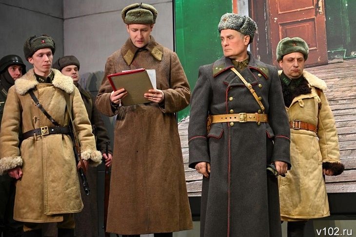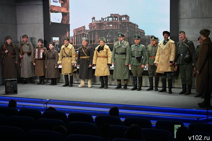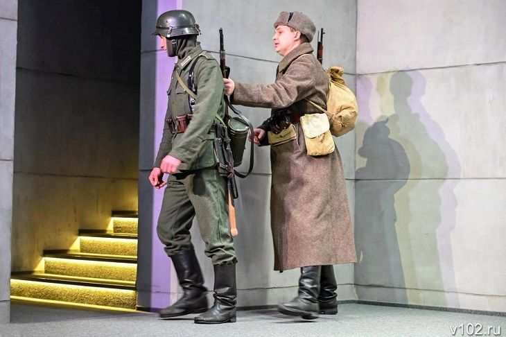Зрители в зале наблюдали за действом, которое происходило на сцене конференц-зала музея-заповедника. Реконструкторы клуба «Пехотинец», которые уже много лет показывают сцену пленения Паулюса, с точностью воспроизвели все детали этого исторического события.