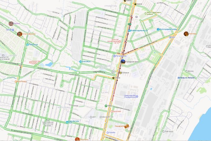 В Городищенском районе Волгоградской области движение у рабочего поселка Ерзовка затруднено. Как сообщают очевидцы, затор из фур в сторону Волгограда образовался из-за ДТП с участием грузовика «Красное и Белое».