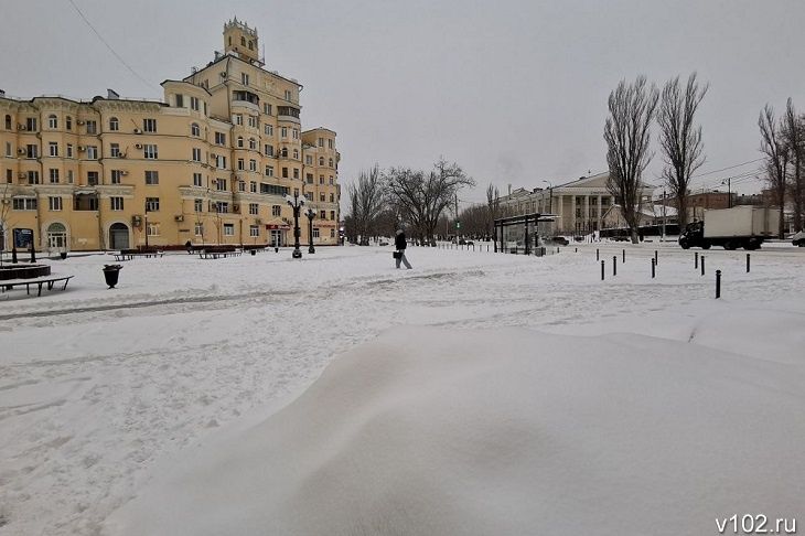Фотограф ИА «Высота 102» Андрей Поручаев утром 3 февраля прогулялся по заснеженным улицам Волгограда.