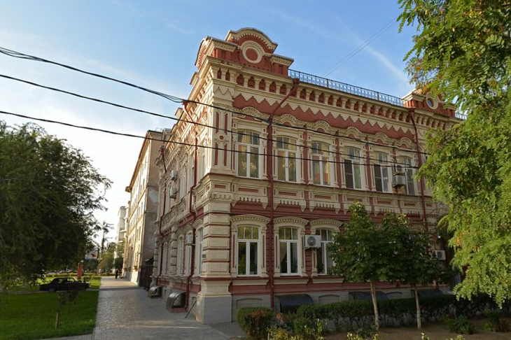 По архитектуре видно, что дом относится к дореволюционному периоду, однако на боковом фасаде указан 1946 год. Из-за этого может возникнуть впечатление, что это здание старой постройки, созданное «под старину». На самом деле речь идёт о реставрации: сооружение действительно дореволюционное, а в 1946 году было восстановлено и объединено из нескольких частей. В наши дни в здании расположено Комитет образования и науки Волгоградской области.