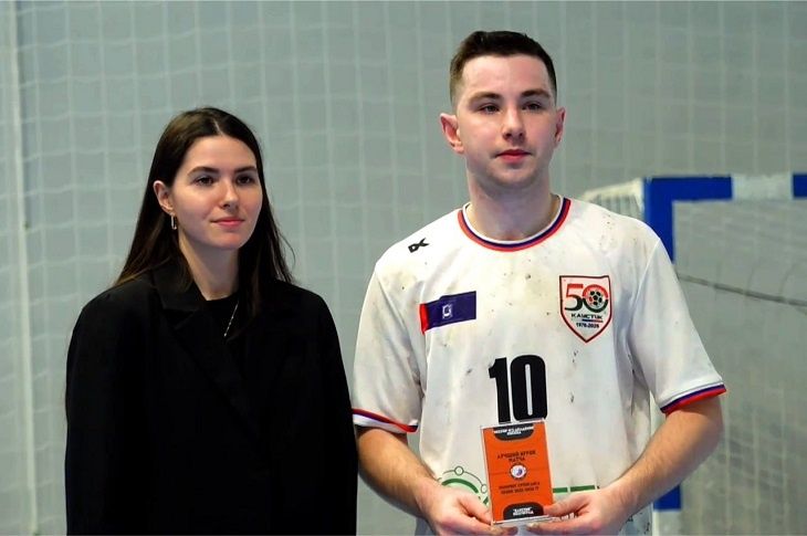 На фото: лучший бомбардир матча - Даниил Кольцов