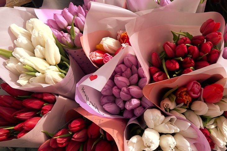 Начнем по порядку. Как подарить девушке весну и ощущение праздника? Основательница цветочной лавки Алена Крючкова уверена, что идеальным и универсальным подарком для девушек станет букет нежных, как сама весна, тюльпанов или более «взрослых и серьезно настроенных» красных роз.