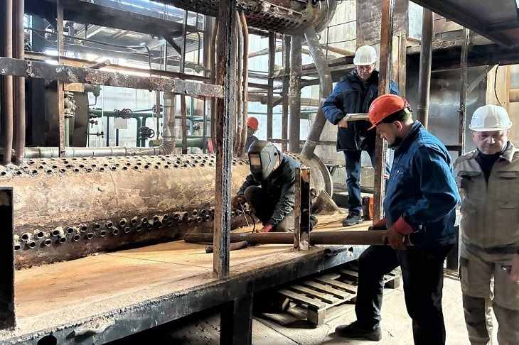 - Прямо сейчас демонтируем экранную часть котла - водотрубные элементы вдоль стенок топочной камеры. Самым трудоёмким этапом будет замена барабана весом 2,5 тонны. В таких стесненных условиях сделать это возможно только с помощью подъемного крана высотой 18 метров, - объяснил Александр Маликов, начальник производственно-технического отдела подрядной организации.