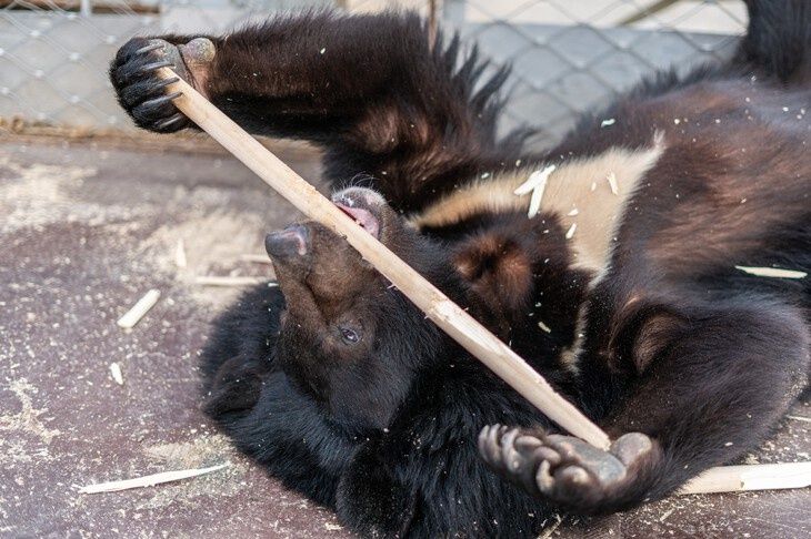 - Медведи – очень загадочные существа. Они- единственные животные, у которых нет мимики. Если тигр или лев хочет напасть, то он начинает активно дергать хвостом, у него поднимаются ушки. С поведением медведя разобраться не так просто. Он может подойти, чтобы поиграть или резко ударить лапой. Ошибочно полагать, что мишка – неповоротливый увалень. Животное с мгновенной реакцией, он резко ударяет лапой, - отмечает Николай Довгалюк. – В какой-то момент Егор стал проявлять агрессию. По какой причине случилась столь ощутимая перемена в его настрое, мы не пониманием до сих пор. Но из-за этого мы были вынуждены отдать его другим владельцам. Гималайского медведя забрал хозяин таежной гостиницы в Красноярском крае. Егора поселили в большом вольере, в котором он чувствует себя весьма вольготно.