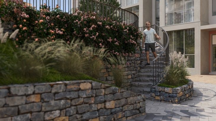 Концепция комплекса строится вокруг зеленого пространства. Представьте более километра пешеходных аллей прямо во дворе. Ландшафтные дизайнеры учли волгоградский характер: здесь высадят крупномерные деревья, создающие спасительную тень в нашей летней суровой жаре, установят перголы и навесы. Здесь даже жарким летом будет комфортно дышать, а водные элементы добавят свежести в воздух.