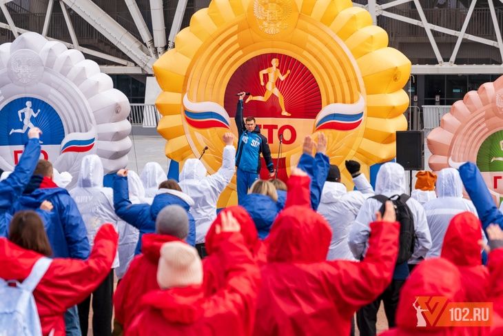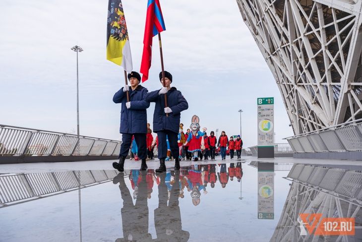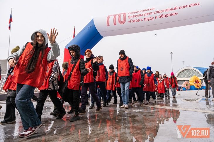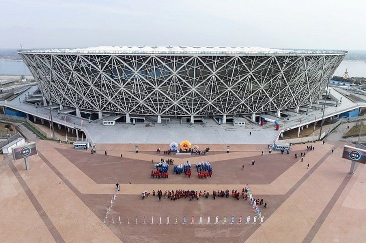 Завершилась акция красочным шествием значкистов ГТО Волгоградской области, которые затем выстроились в цифру 243 на площадке у стадиона «Волгоград Арена».