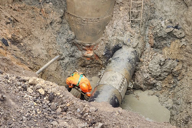 Сложные работы с ювелирной точностью и в стесненных условиях провели сотрудники коммунальных служб при ремонте магистрального водовода в Дзержинском районе Волгограда.