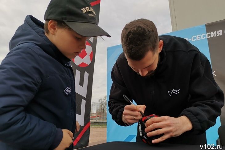 На «Волгоград Арене» начался матч 28-го тура Первой лиги - «Ротор» принимает дома «Сокол». Пришедшим пораньше болельщикам было, чем занять себя в ожидании игры. Автограф-сессию провел защитник сине-голубых Николай Покидышев.