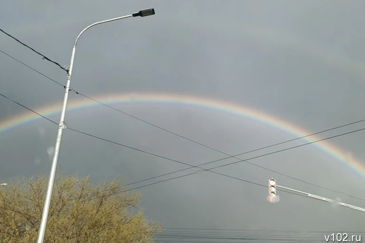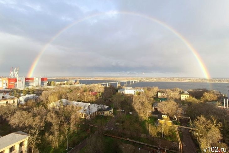 Над Волгоградом сегодня, 14 апреля, после дождя появилась огромная радуга. Красивыми кадрами поделились читатели ИА «Высота 102».