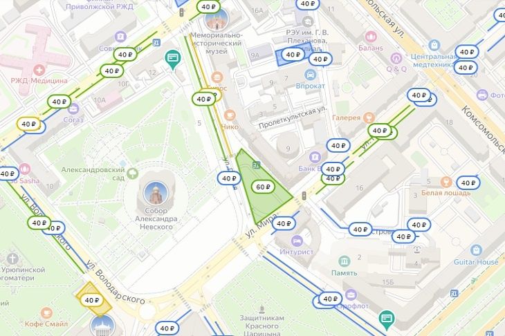 Автомобилисты сообщили о подорожании парковочного места в центре Волгограда у Главпочтамта с 40 до 60 рублей. На портале «Парковки Волгограда» это место, выделенное зеленым многоугольником, отображается как «Зона №902, ул. им. Гоголя».