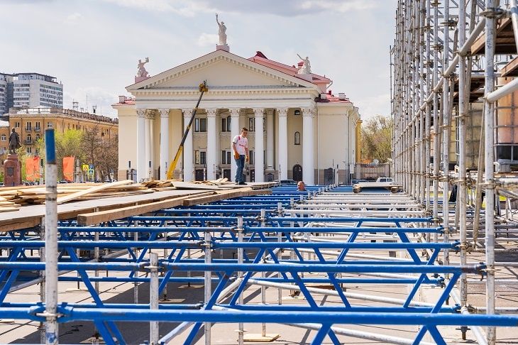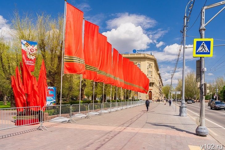 Сегодня в самом разгаре работы на площади Павших Борцов. Рабочие собирают каркас трибун, на которых по традиции разместятся почетные гости. А вот что касается праздничного убранства улиц Волгограда, то здесь профильные службы уже рапортовали о завершении работ – по данным мэрии, мосты, магистрали и центральные улицы украсили 2000 флагов.