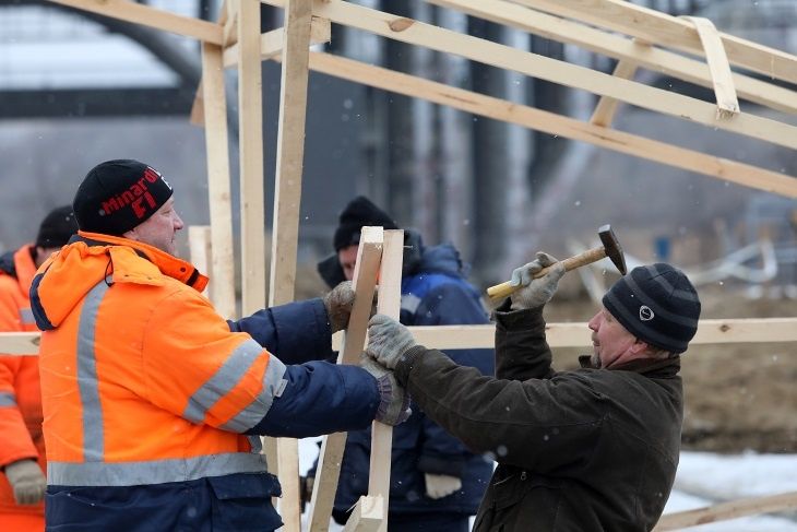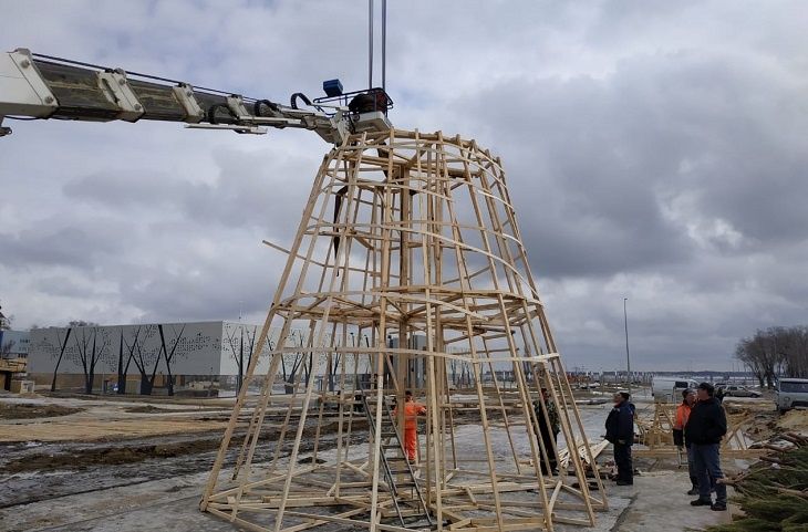 В Волгограде началась установка 13-метрового чучела Масленицы