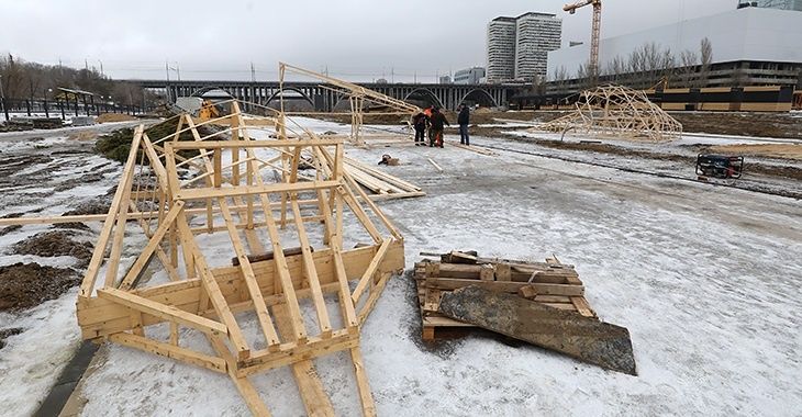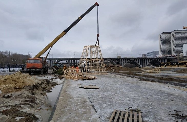 Основание и часть каркаса 13-метрового чучела Масленицы с помощью спецтехники начали устанавливать сегодня в пойме реки Царицы на площадке у музея «Россия - моя история», сообщает ИА «Высота 102». Чтобы реализовать идею руководства Волгограда и порадовать горожан, трудится целая команда, да и процесс создания беспрецедентно высокого чучела оказался непростым. По сути, это довольно сложное инженерное сооружение. Нужно было предусмотреть, как будет компенсироваться ветровая нагрузка, продумать какой должна быть толщина сечения бруса, составить и согласовать чертеж. После того как были изготовлены элементы конструкции, их начали монтировать уже на месте.