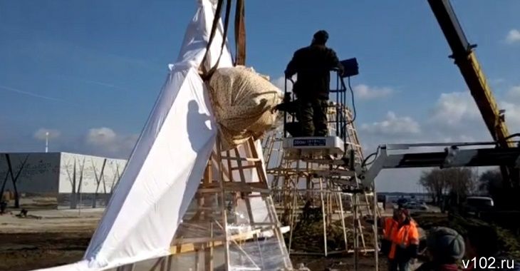 Сегодня в активную фазу вошли работы по установке в центре Волгограда 13-метровой Масленицы. Как сообщает ИА «Высота 102», при помощи крана рабочие водрузили на каркас голову, туловище и руки чучела. Хотя назвать миловидную особу чучелом сотрудники МБУ «Северное» явно не решались. С особой деликатностью и заботой они поставили на место пышную грудь русской красавицы, набитой соломой. Завтра работы по установке фигуры продолжатся.