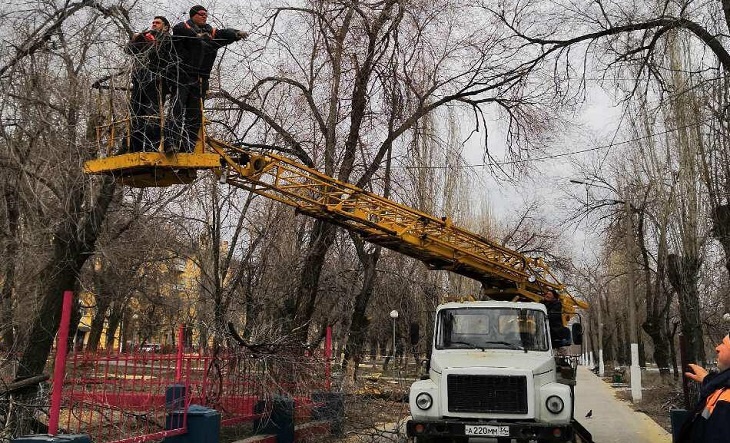 Парки и зеленые зоны Краснооктябрьского района готовят к весне: на всех территориях идут работы по омолаживающей и санитарной обрезке зеленых насаждений, выкорчевываются деревья, отслужившие свой век и полностью сгнившие, - сообщает ИА "Высота 102".